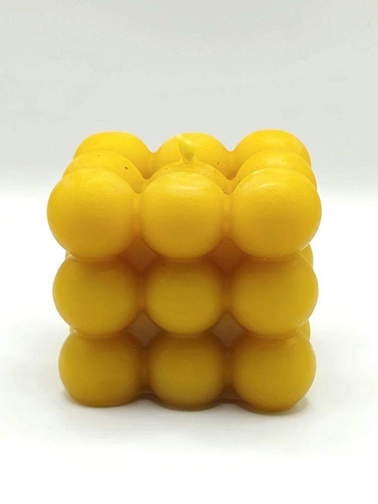 Bąbelkowy sześcian przyciąga wzrok i doskonale komponuje się z nowoczesnymi wnętrzami. To dekoracyjna świeca z wosku pszczelego, która nie tylko pięknie wygląda, ale również tworzy przytulną atmosferę, wydzielając subtelny, naturalny zapach.