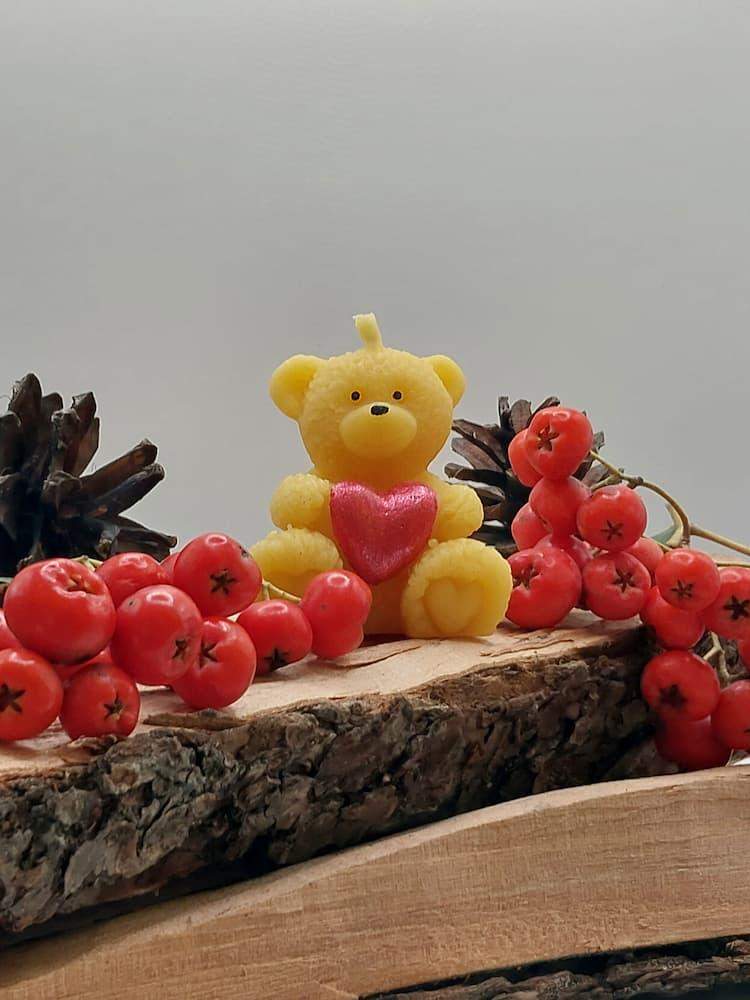 Świeca z wosku pszczelego Miś z sercem