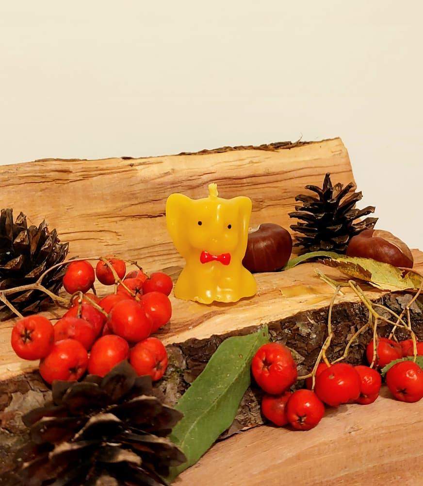 Świeca z wosku pszczelego Słonik z muszką na szczęście